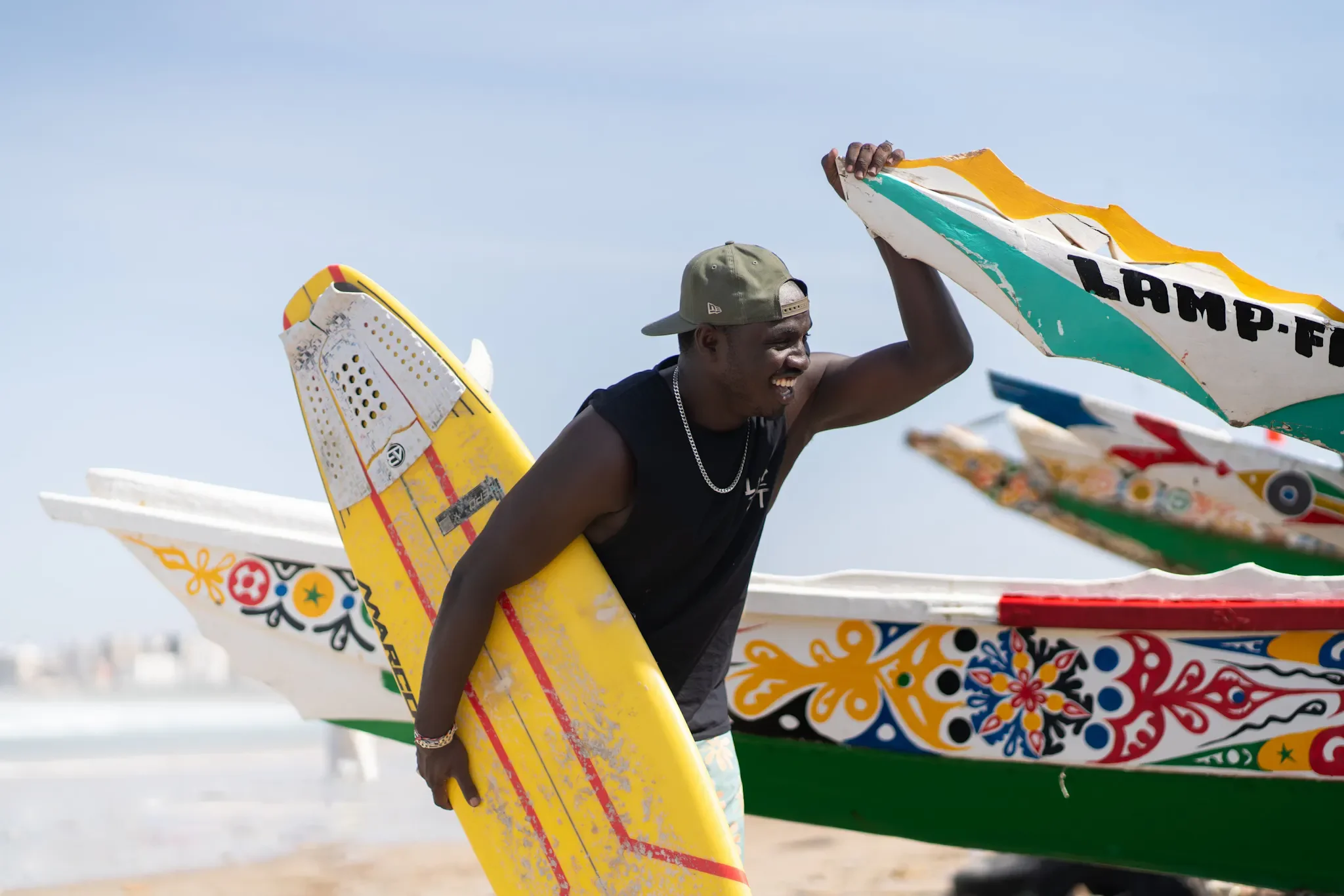 The winner of this years’ Aloha Award, Babacar Thiaw, received a $10,000 donation to the charity or non-profit organization of his choice, a one-week, all-expenses paid trip to Namotu Island in Fiji and a scholarship to attend the 2024 International Surf Therapy Organization conference “Blue Mind Summit” in Los Angeles. Babacar has chosen to direct his cash donation toward his community, supporting local street kids with mattresses, food and surf lessons, so they can live self-sufficiently and offering them a doorway into a new sport that can provide hope and motivation for the rest of their lives. Additionally, he has purchased 100 trash cans and distributed them around local beaches and arranged for the local council to collect them each week.